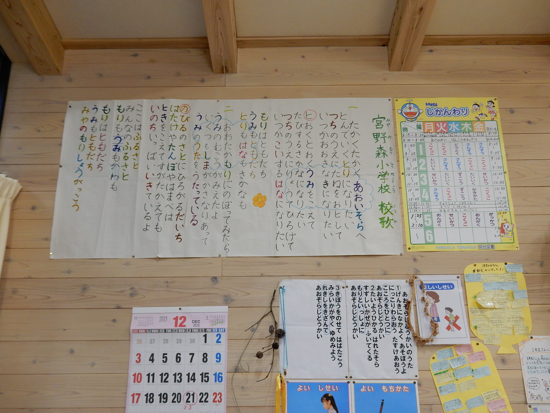 震災被災地にあった蒜(のびる)小学校と児童数減少の戸小学校が統合し、C.Wニコルの提唱する「の学校」を表現する学校名として宮野森小学校となった
