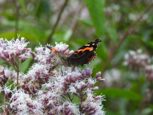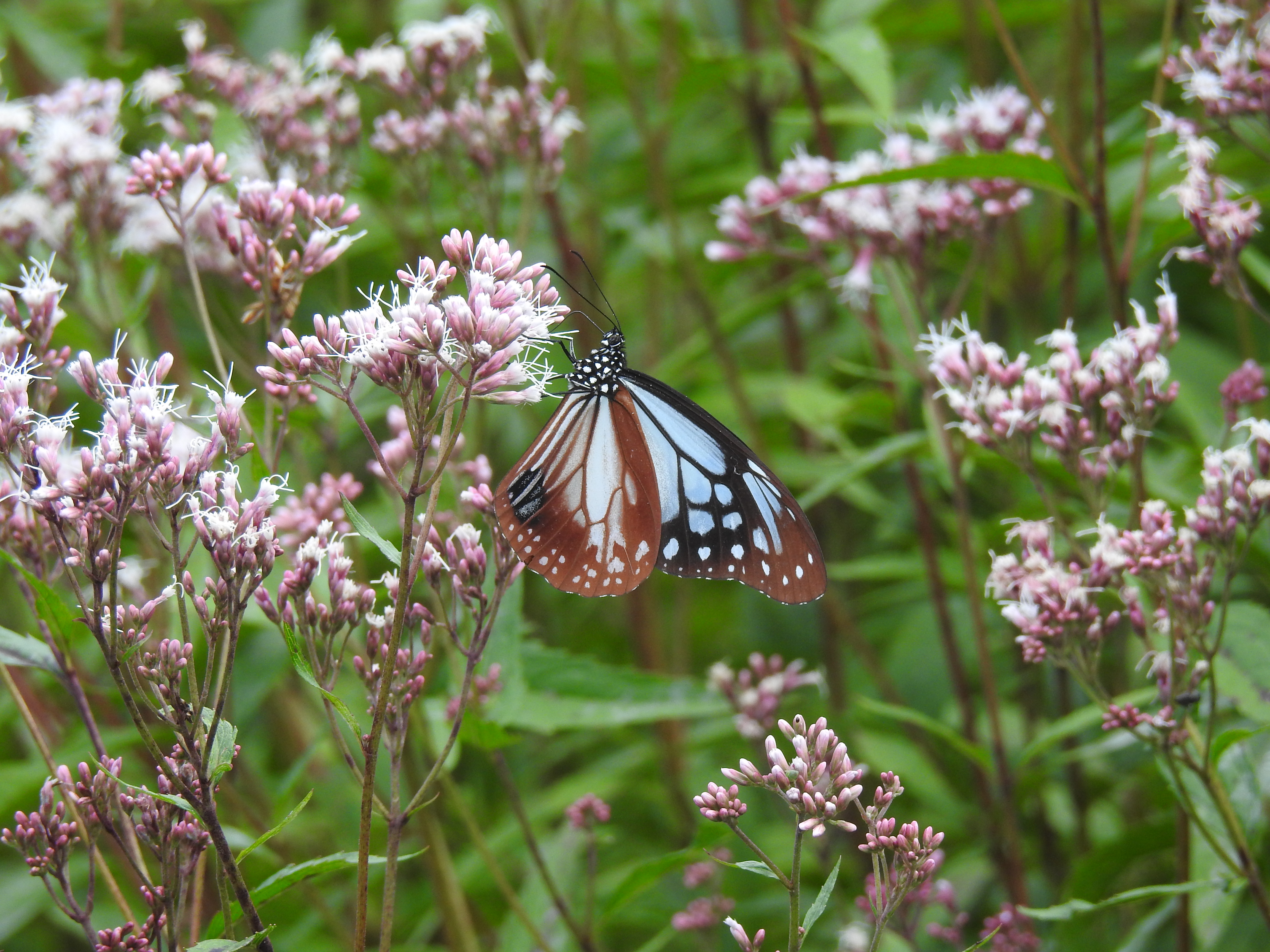 現地で知り合いになったKさんが歩くとフジバカマからアサギマダラが飛び出してきた。今日は個体数が少ないが、数日前は多かった、とのこと。ここはKさんに教えてもらった「秘密の場所」。「蝶の楽園」の中心部よりも個体数が多い。