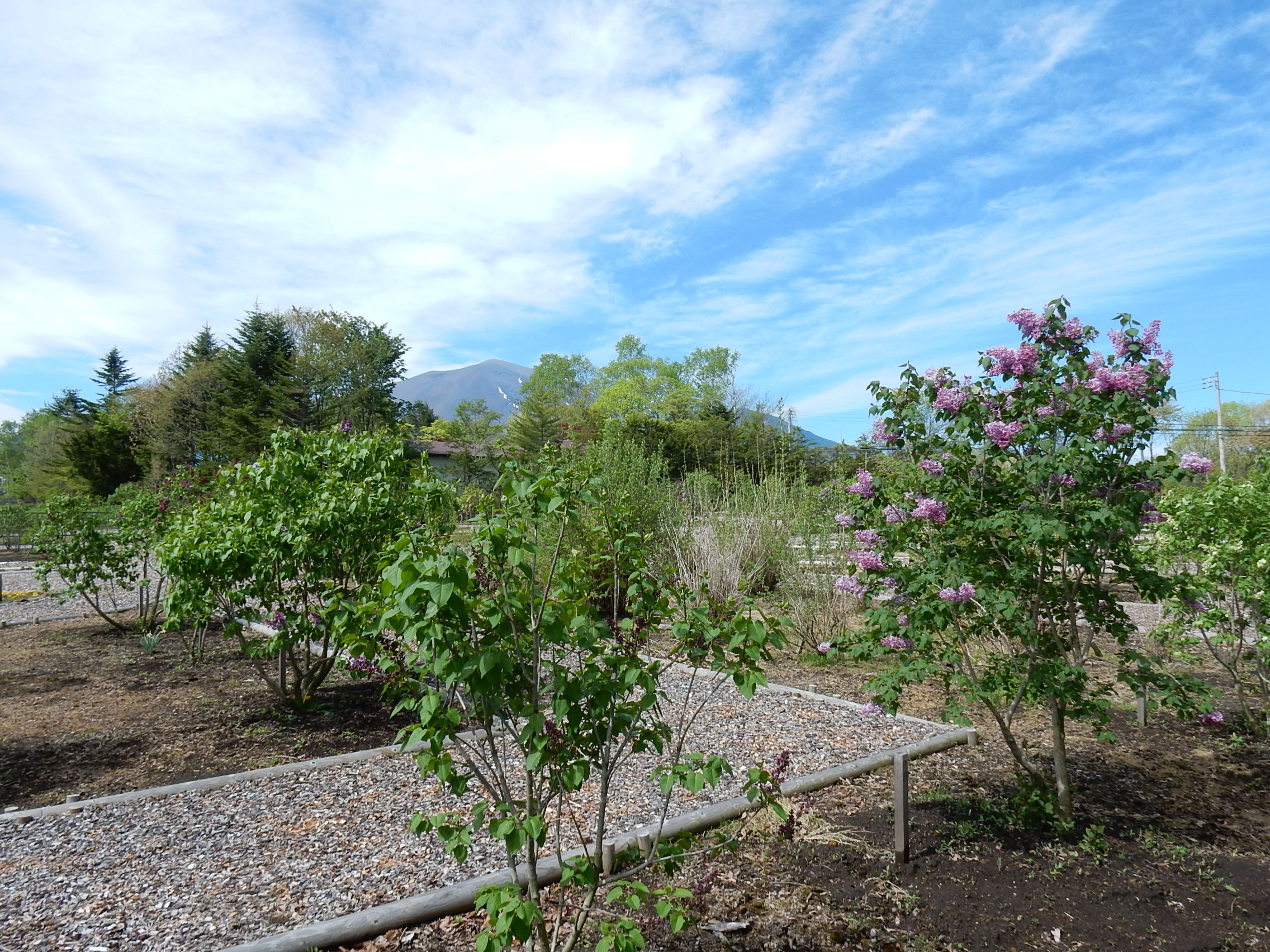 国道146号を北上し、長野県から群馬県に入った北軽井沢のスーパーで一休み。近くにライラック園があり視察する事に。北欧の外国の方の所有で、若木が多数植栽されており花はまだ少ないが、開花時期の異なる多品種を楽しめるように設計されているらしい。歩道にチップが敷き詰められており時期を選ぶと、ゆっくりと散策しながら色や香りの変化が楽しめる仕掛けだ。
