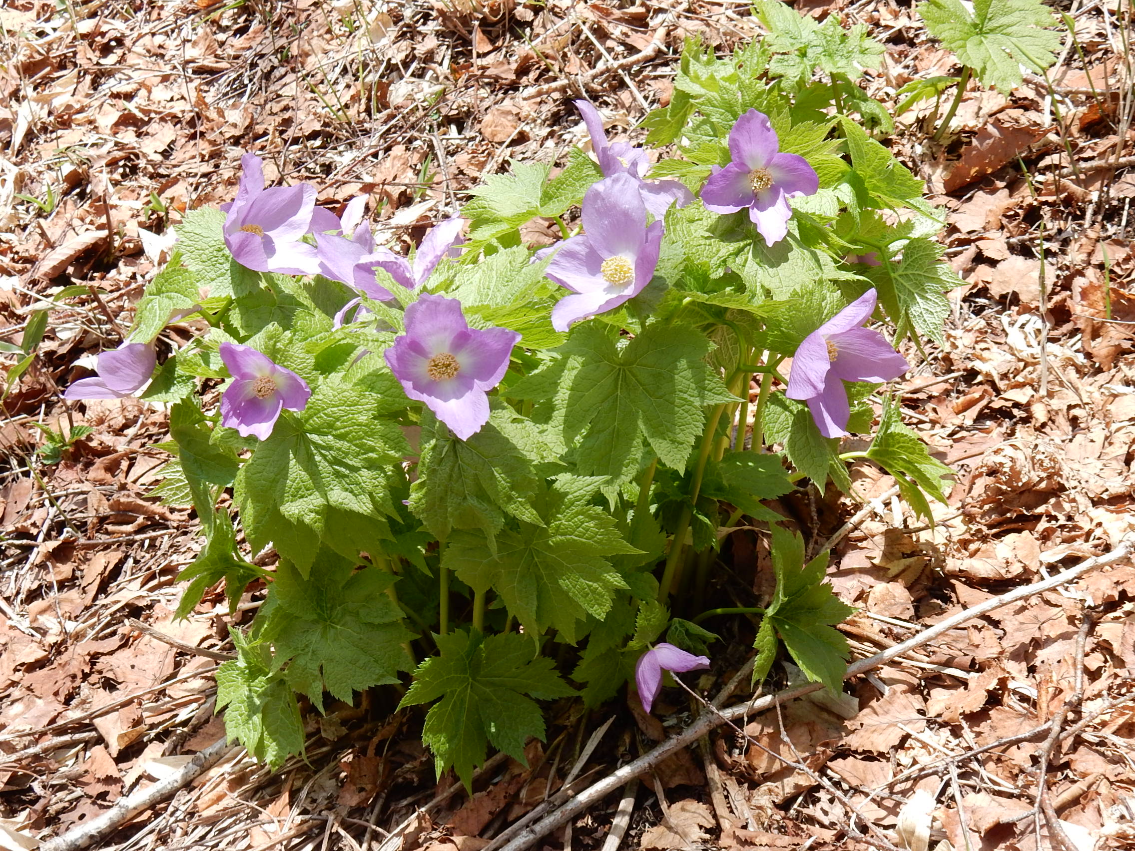 虎テープに沿って歩いていくと、出たぞ「シラネアオイ群生地」。
