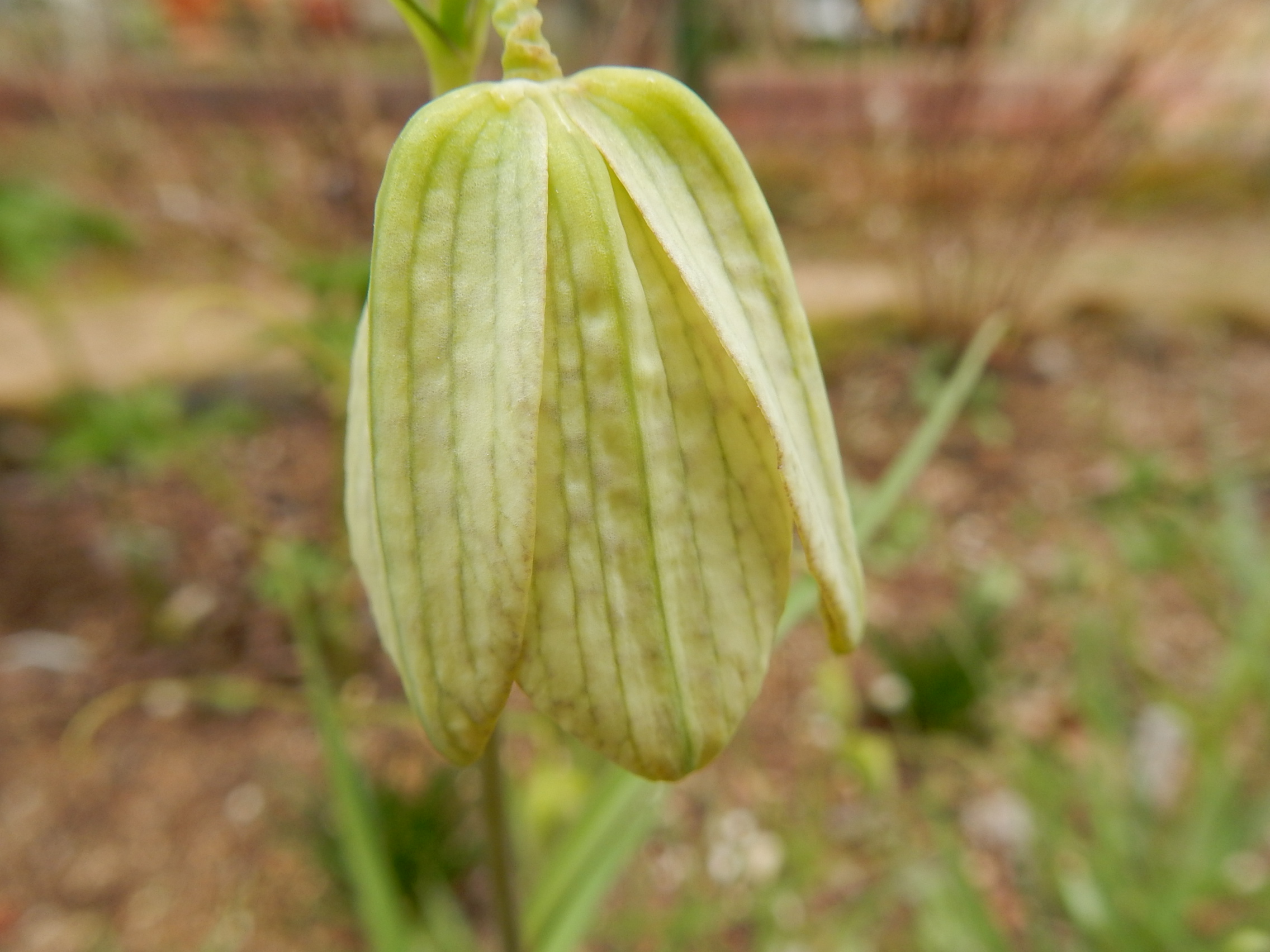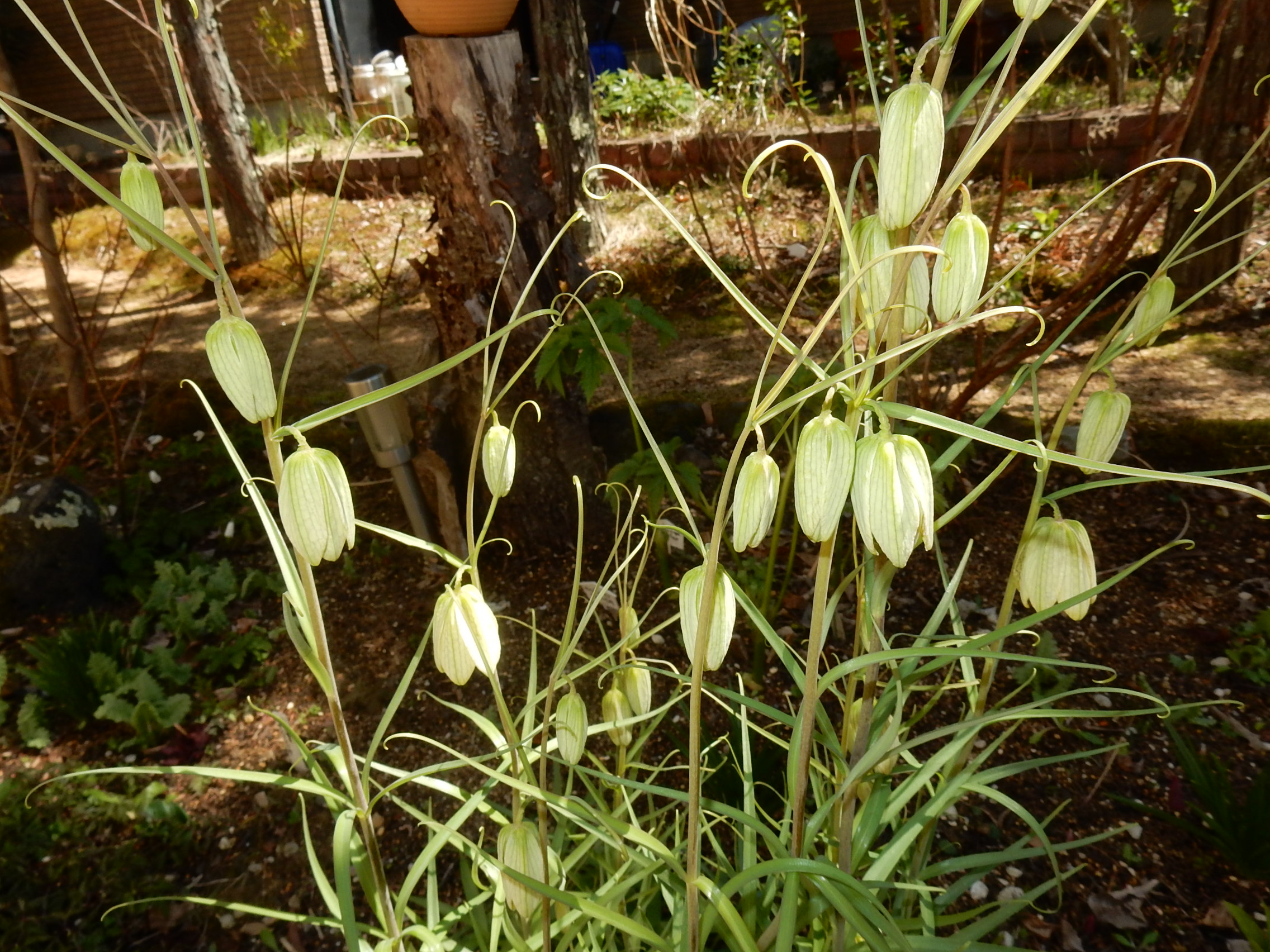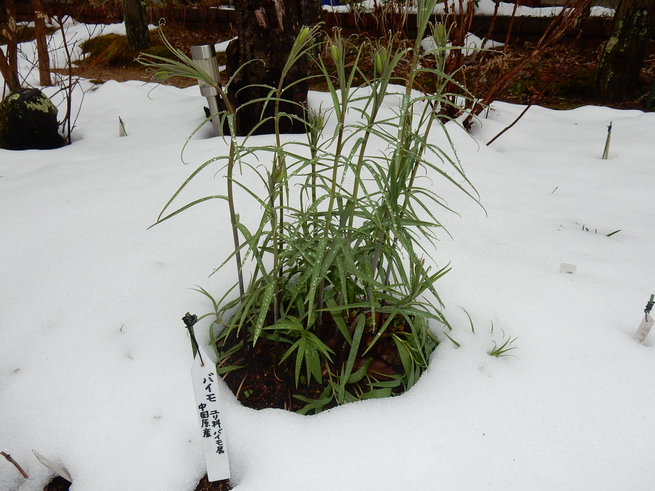 バイモとは不思議な名前の植物です。貝母とも書きますが、地中部の鱗茎が母貝と子貝の様に抱き合っているそうです。我が家では、庭のあらゆる山野草の中で春一番に地上に顔を出してくれます。中国東部原産のユリ科植物で、約300年前に薬草として渡来しました。花の裏側に風変わりな網目文様を付けて網笠百合(アミガサユリ)とも言われます。故人の千葉大学名誉教授で日本自然保護協会の理事長をやられた沼田眞先生のご自宅の庭には沢山生えているとの話を伺ったことがあり、かなり植物に精通した方(私は除外)のシブーい趣味かも知れません。バイモをデザインしたマグカップを先生のご自宅近くの陶器店で手に入れましたのでバイモの成長記録と一緒に紹介します。